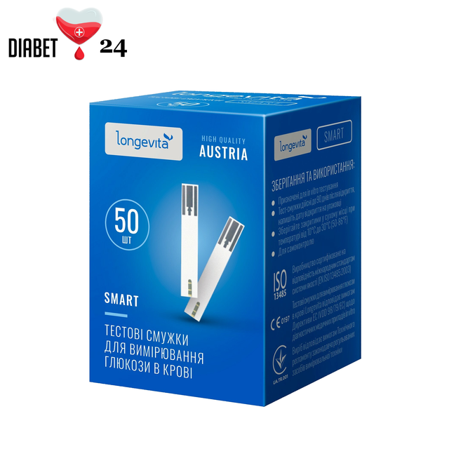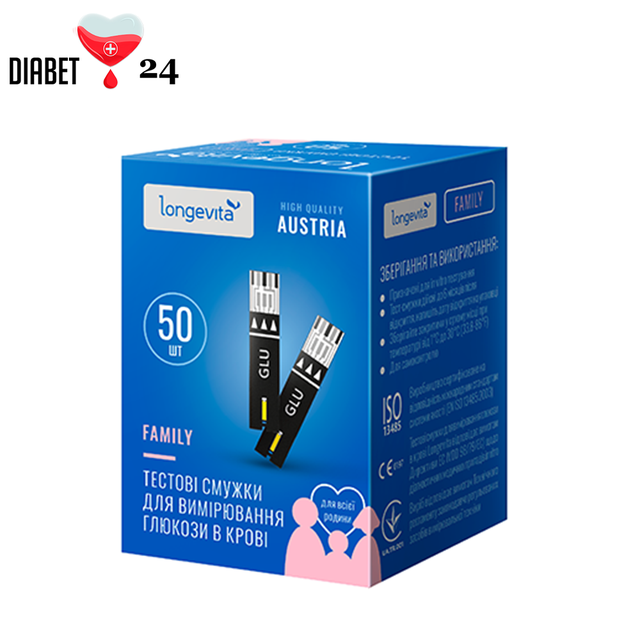 Підходять виключно для глюкометрів бренду «Лонгевіта». Користуються попитом через високу точність результатів вимірювань і доступну вартість. Рекомендовані лікарями для пацієнтів з I і II типом діабету. Дуже прості у використанні. В упаковці 50 тест-смужок.