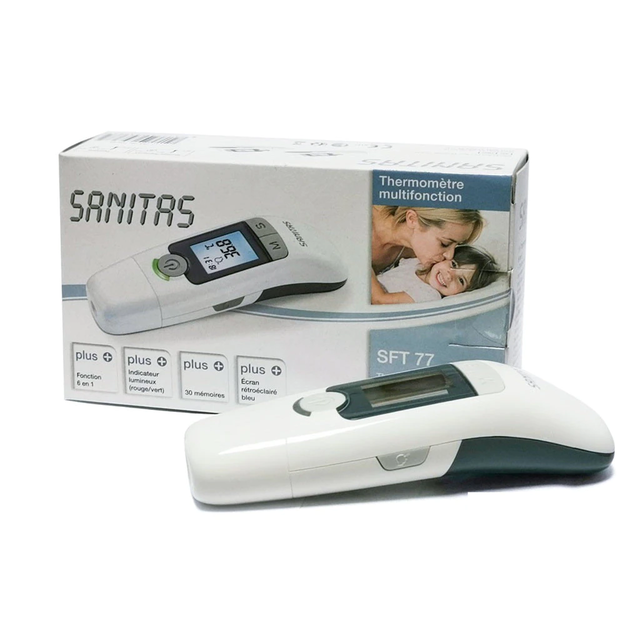 Один пристрій, 6 функцій: все в одному з термометром СФТ 77. Чи то на лобі, чи то в вусі, температура може вимірюватися за лічені секунди. Цей продукт також має функцію вимірювання температури об'єкта, а також функцію відображення дати та часу, 30 комірок пам'яті й оптичну сигналізацію. А також низка додаткових функцій.